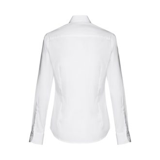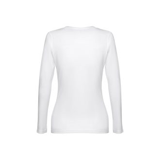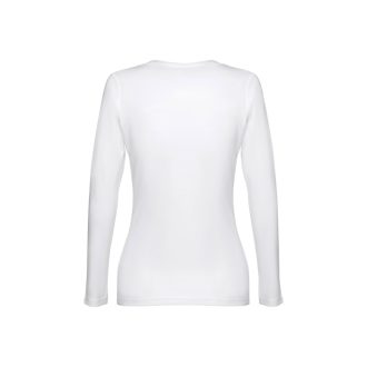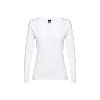 THC BUCHAREST WOMEN WH II. ქალის თეთრი, გრძელი მკლავიანი, სკუპის ფორმის ყელით, ფიტირებული ტენიანი მაისური. 100% კარდირებული ბამბა. თეთრი