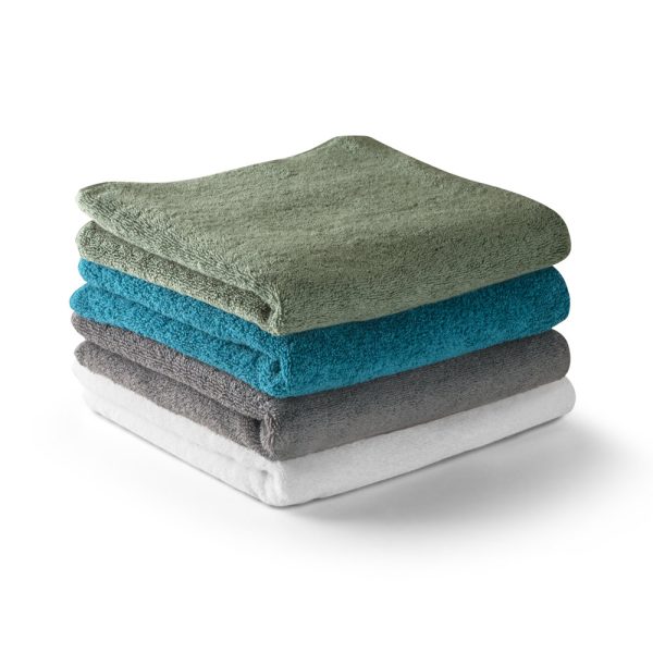 აბაზანის პირსახოცი ბამბის (82%) და გადამუშავებული ბამბის (18%) ნარევით (500 გ/მ²). წარმოებული ევროპაში. ზომა: 1400 x 700 მმ.
