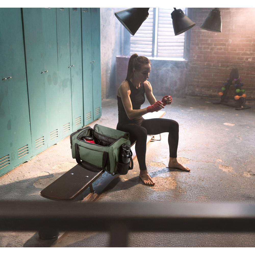 სპორტული ჩანთა ფართო მთავარ განყოფილებით და შიდა ჯიბით, იდეალურია მცირე პირადი ნივთების ორგანიზებული და უსაფრთხო შენახვისთვის. გარე მასალა: მაღალი სიმკვრივის 600D RPET პოლიესტერი. მოცულობა (L):…