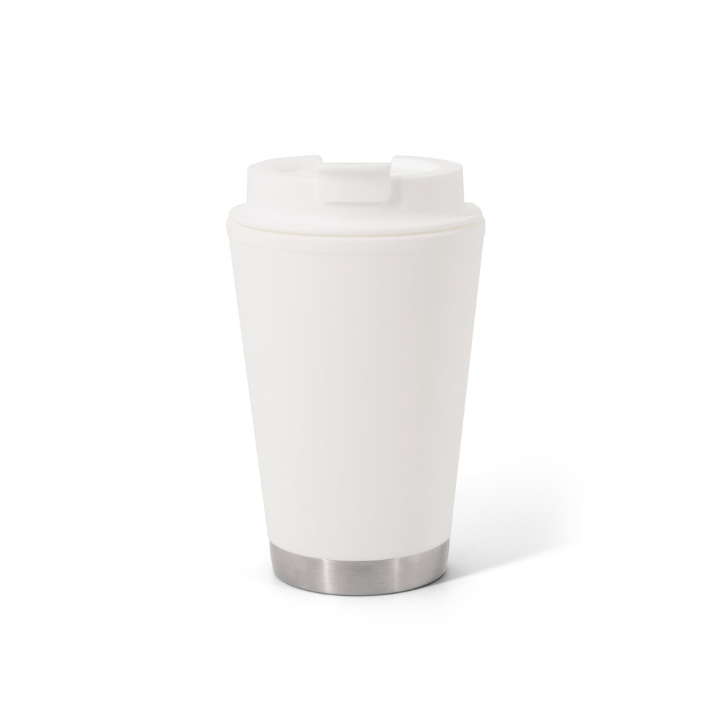 ორმაგი კედლის, გაჟონვისგან დაცული PP სამოგზაურო ჭიქა. თავსახური აღჭურვილია ფლიპ-ტოპ სისტემით, რომელიც იცავს სასმელს. მოცულობა 410 მლ-მდე. ø90 x 145 მმ.