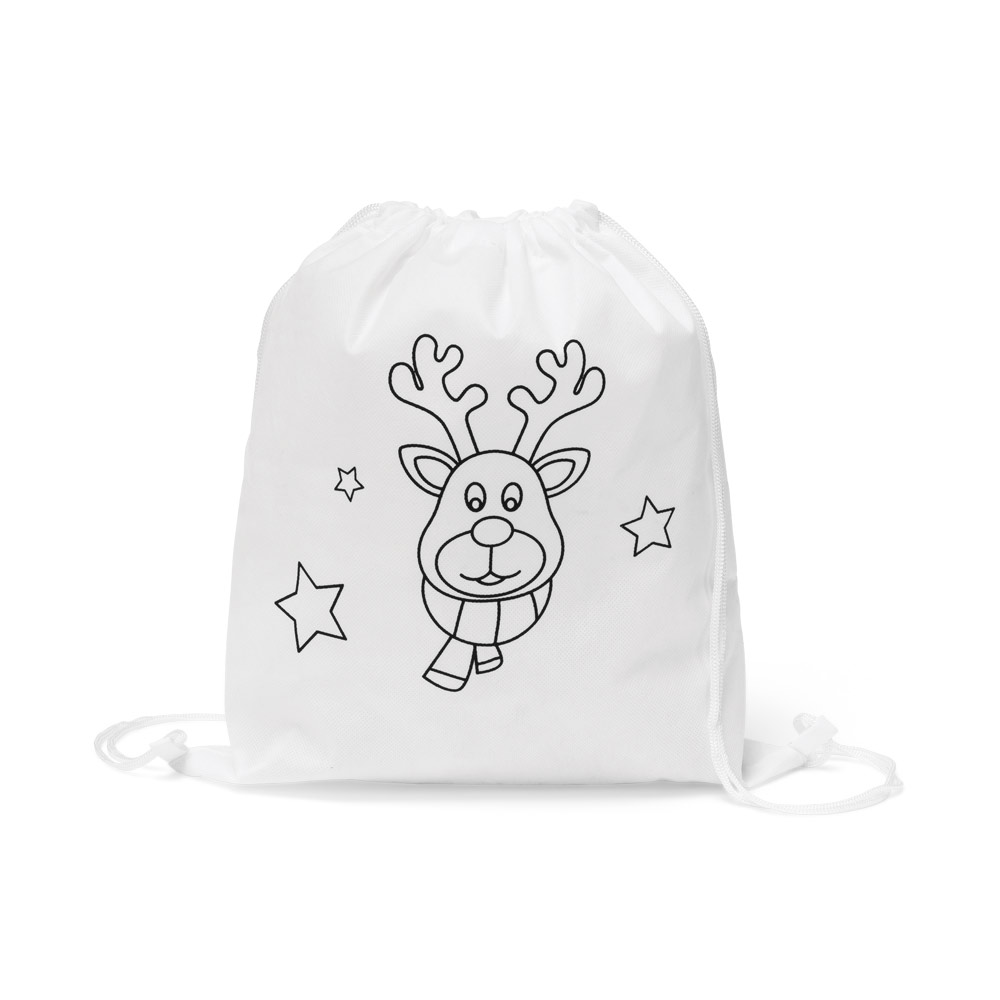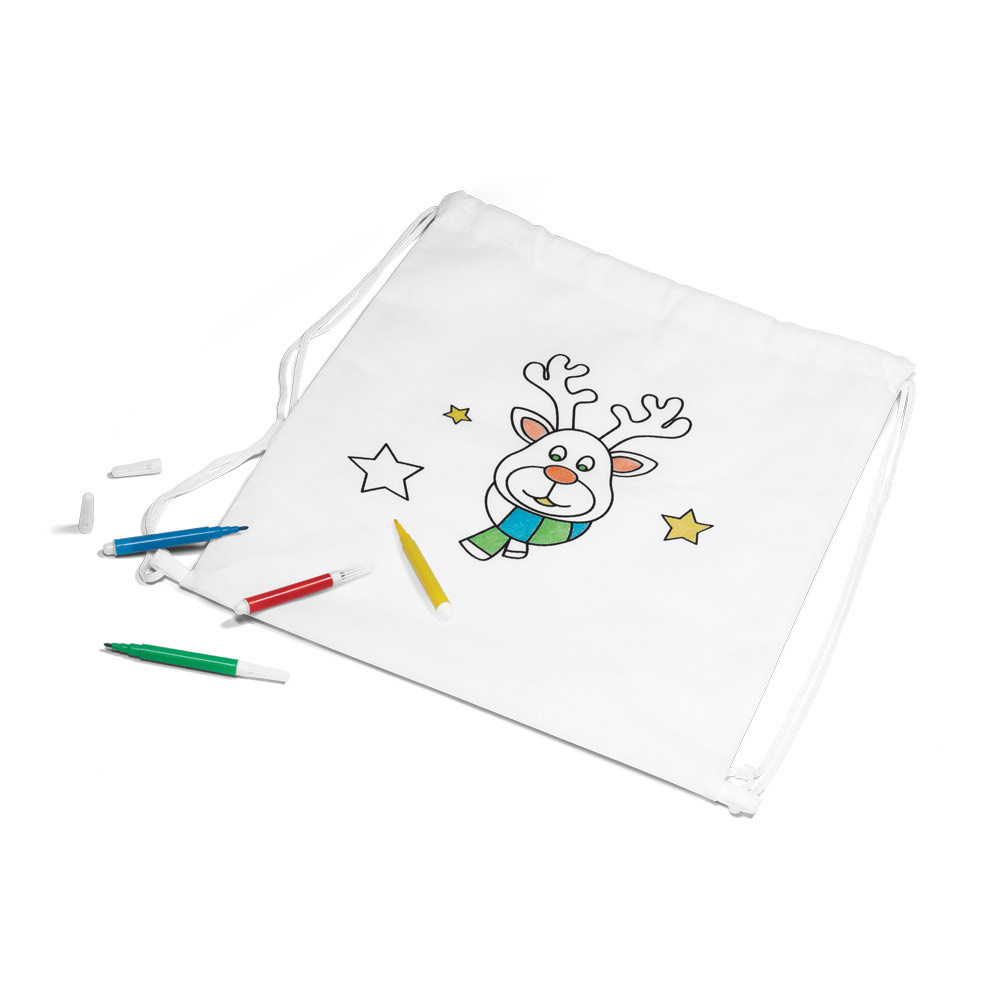 შავი ჩანთა არაქსოვილ მასალაში (80 გ/მ²) ფერადი ნახატით და შიდა ჯიბით, 4 მარკერით ერთად. ზომა: 300×350 მმ.