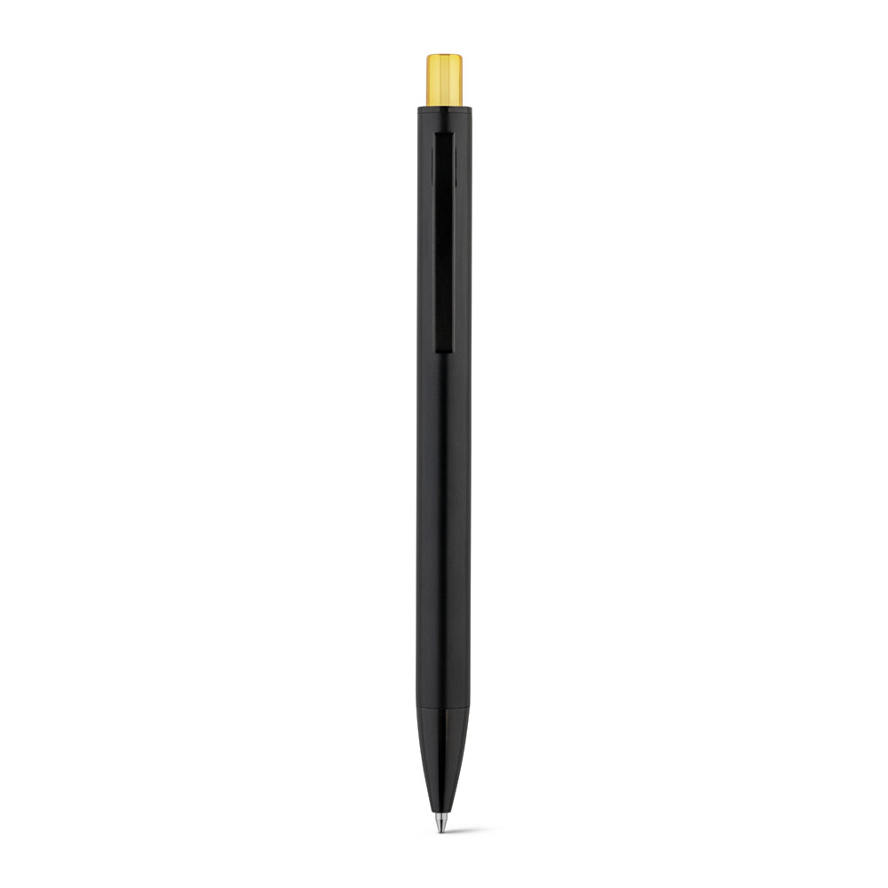 ალუმინის ბურთულიანი კალამი მატე ზედაპირით და ღილაკი გლუვი ზედაპირით. კორპუსი ორმაგი დასრულებით, რაც საშუალებას აძლევს ლაზერული გრავირება ფერადი ეფექტით. ლურჯი მელანი. ø10 x 140 mm