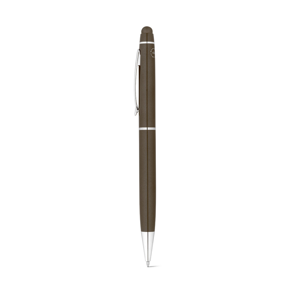 რეციკლირებული ალუმინის (100% rAL) ბურთულიანი კალამი სტილუსის წვერით. ლურჯი მელანი. ø10 x 141 მმ