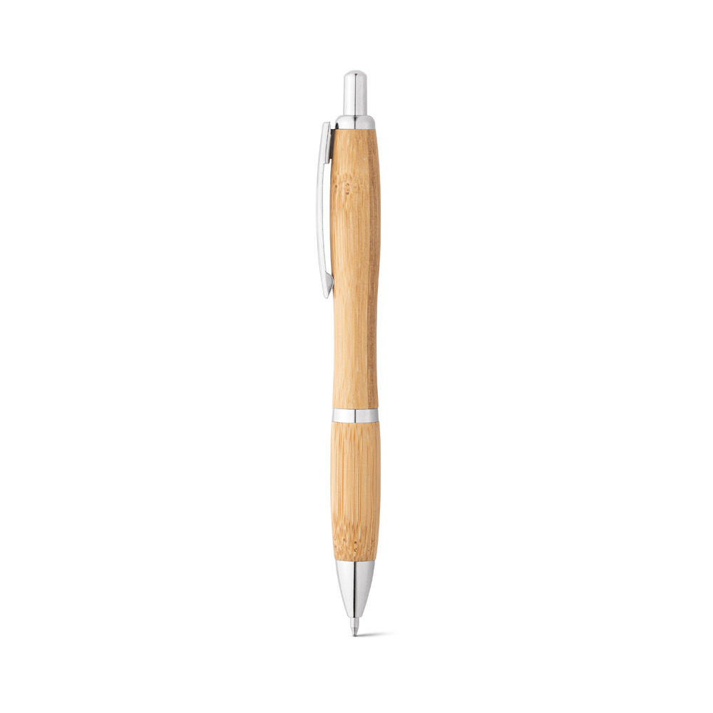 NICOLE. ბამბუკის ბურთულიანი კალამი კლიპით და მეტალის დეტალებით
