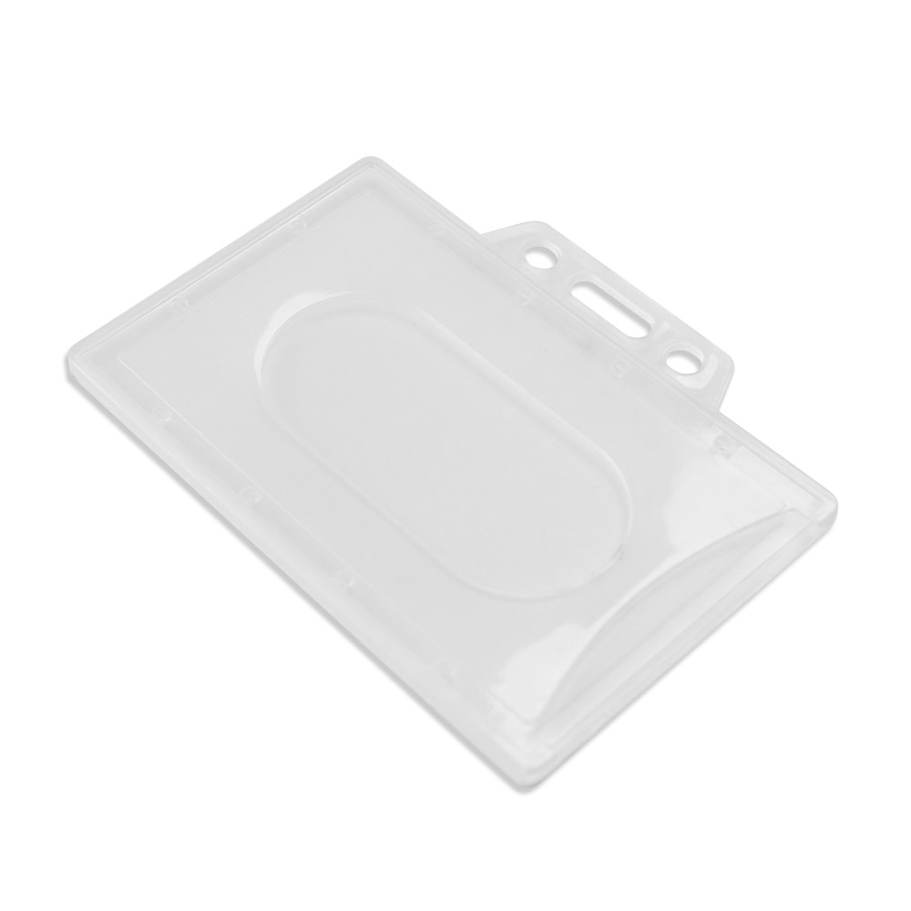 მყარი PP ბარათის დამჭერი. მსუბუქი, გამძლე და პრაქტიკულია ბარათების დაცვისთვის სამუშაოზე, ღონისძიებებზე ან ლექციებზე. ზომა: 86 x 54 mm.