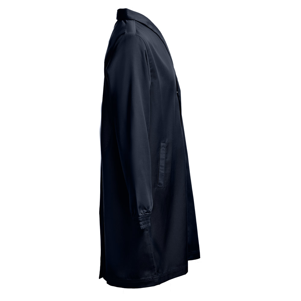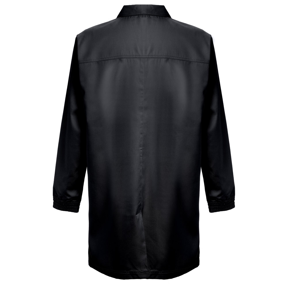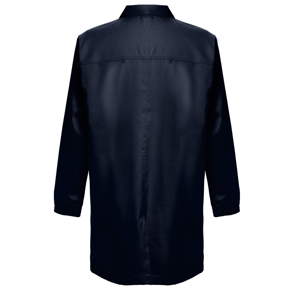 სამუშაო სამოსი (უნისექსი) 20% ბამბა და 80% პოლიესტერი (190 გ/მ²). ელეგანტური და თანამედროვე დიზაინი სტილიზებული საყელოთი და 2 გვერდითი ჯიბით. ელასტიური მანჟეტები და ღილებით დაკეტვა.