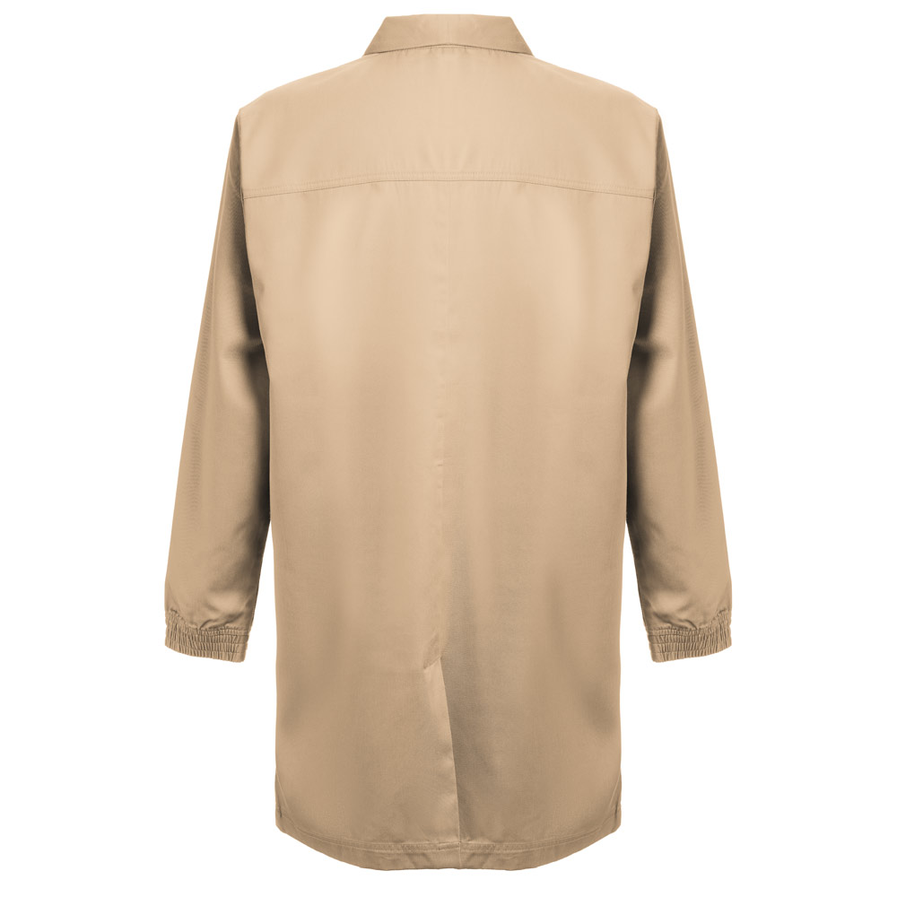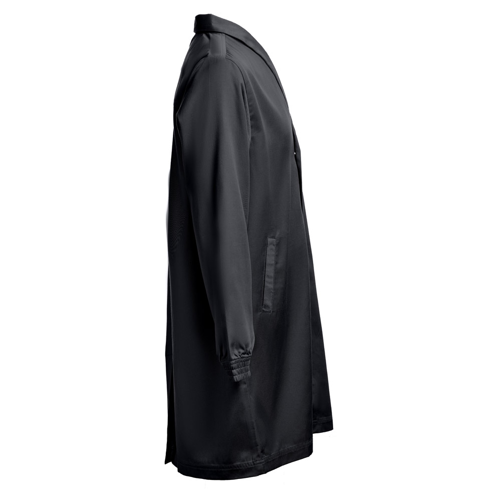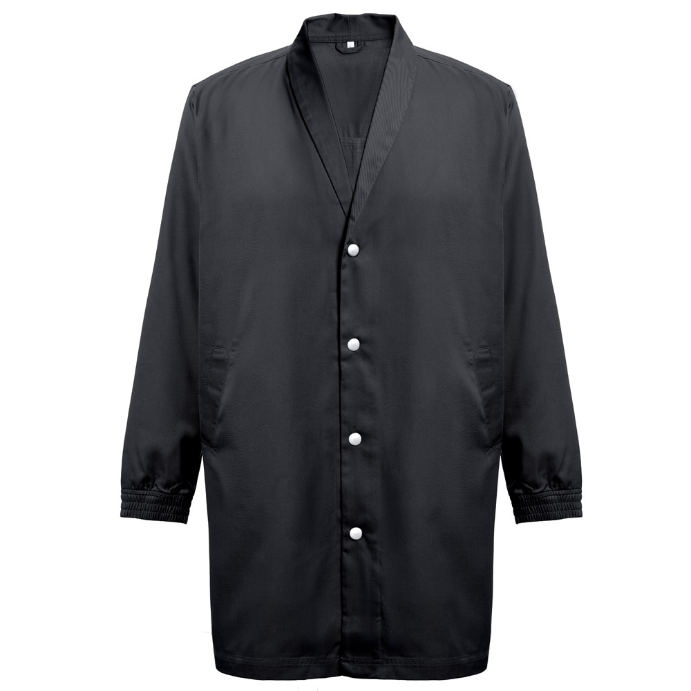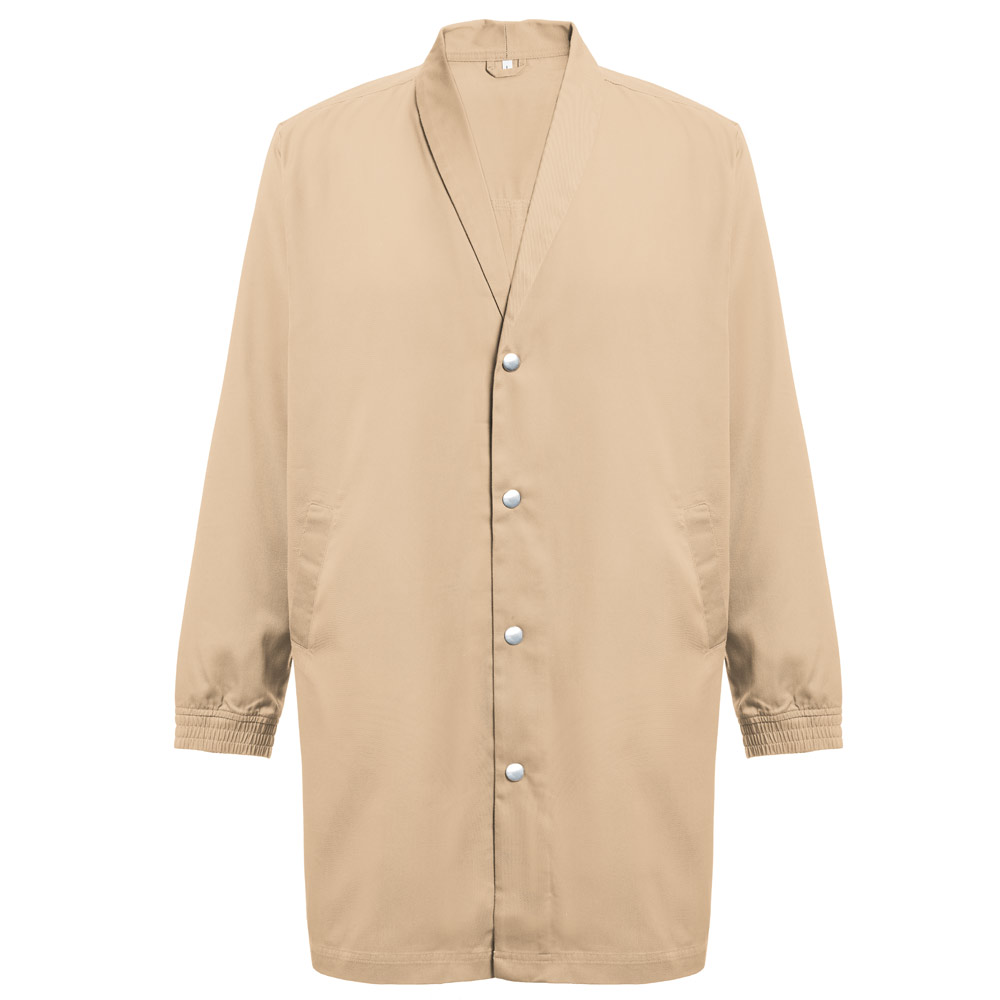 სამუშაო სამოსი (უნისექსი) 20% ბამბა და 80% პოლიესტერი (190 გ/მ²). ელეგანტური და თანამედროვე დიზაინი სტილიზებული საყელოთი და 2 გვერდითი ჯიბით. ელასტიური მანჟეტები და ღილებით დაკეტვა.