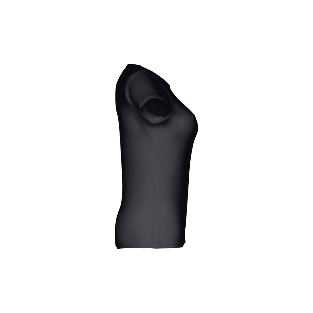 ქალის ფიტირებული ტიში 100% ბამბის ჯერსის ნაქსოვით (150 გ/მ²) კარდირებული ბამბის ძაფით (ფერი 183: 90% ბამბა/10% ვისკოზა; ფერი 196: 98% ბამბა/2% ვისკოზა). აქვს თხელი ორმაგი…
