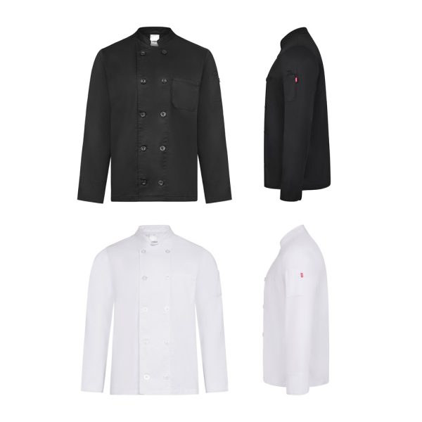ხანგრძლივი მკლავიანი სამზარეულოს ჟაკეტი (190 გ/მ2), დამზადებული ბამბის (35%) და პოლიესტერის (65%)გან. აქვს ორმაგი ღილებით დახურვა და ორი ჯიბე (1 მკერდის ჯიბე და 1 ჯიბე მარცხენა მხარეს)…