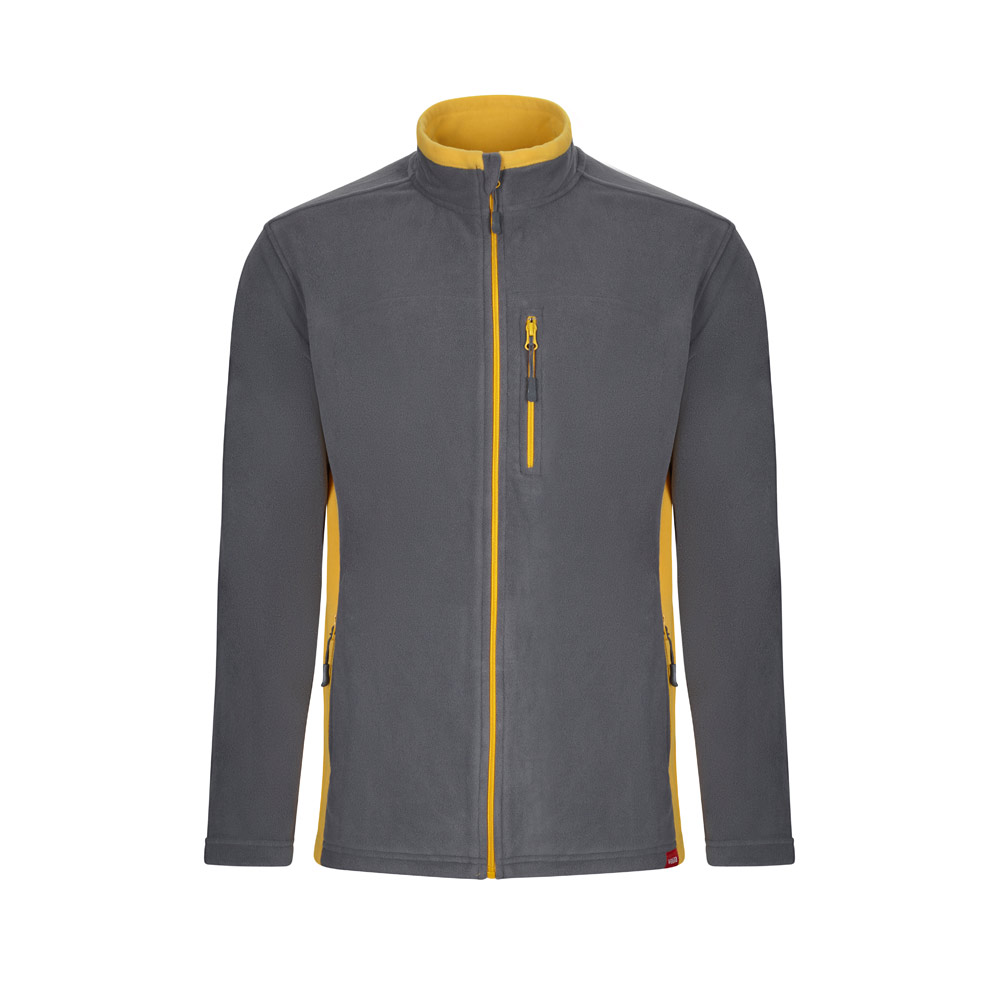 ორი ფერის ფლის ჟაკეტი (220გ/მ²) პოლიესტერში (100%). მიკროფიბრის ქსოვილი. ცენტრალური ზიპით, გვერდებზე, საყელოს შიგნითა მხარეს და ზიპებზე კონტრასტული ფერი. ხუთი ჯიბით (3 გარე…)