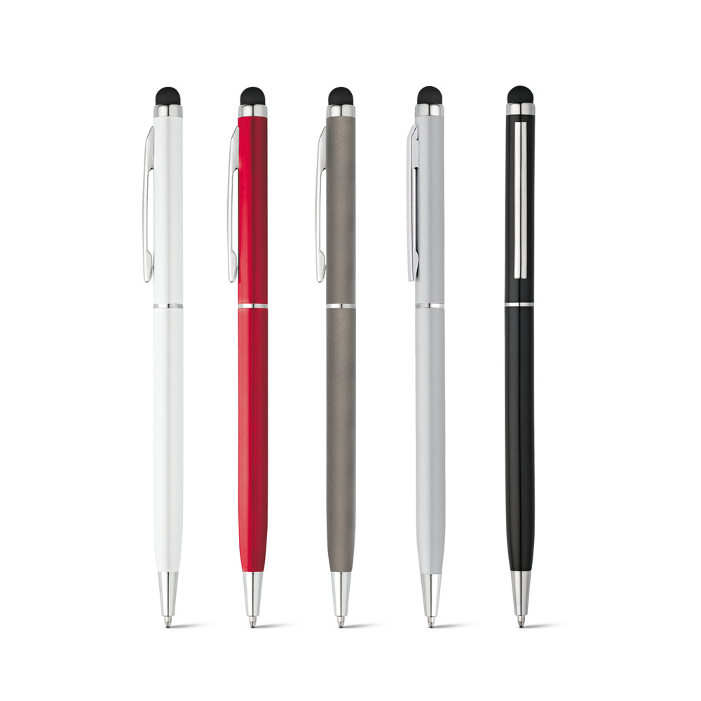 ალუმინის ბურთულიანი კალამი ტვისტ მექანიზმით, კლიპით და ტაჩის წვერით. ლურჯი მელანი. ø8 x 135 მმ